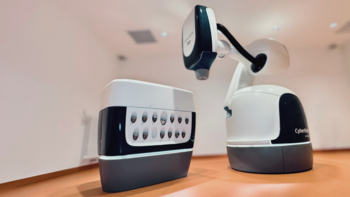 Das CyberKnife® ist eine robotergestützte Bestrahlungsanlage. Der Linearbeschleuniger ist dabei an einem hochflexiblen Roboterarm montiert – ähnlich wie in der Automobilindustrie. Dadurch bewegt sich das System frei um die Patient*innen und ermöglicht eine Vielzahl präziser Einstrahlwinkel. Besonders empfindliche Strukturen, wie in Eckhards Fall das Rückenmark, können so gezielt geschont werden. Die Einstrahlungen sind Millimetergenau und können sogar die Atembewegung eines Tumors kompensieren. Die Behandlung erfolgt ambulant, schmerzfrei, nebenwirkungsarm und ohne Narkose.